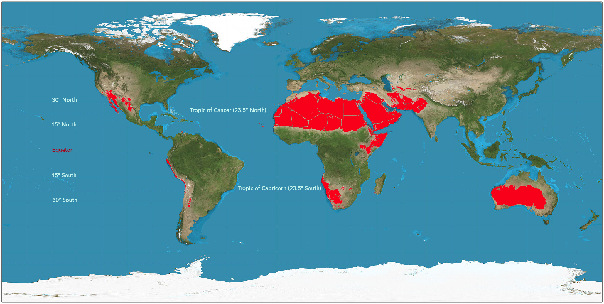 The Hot Deserts are marked in RED.